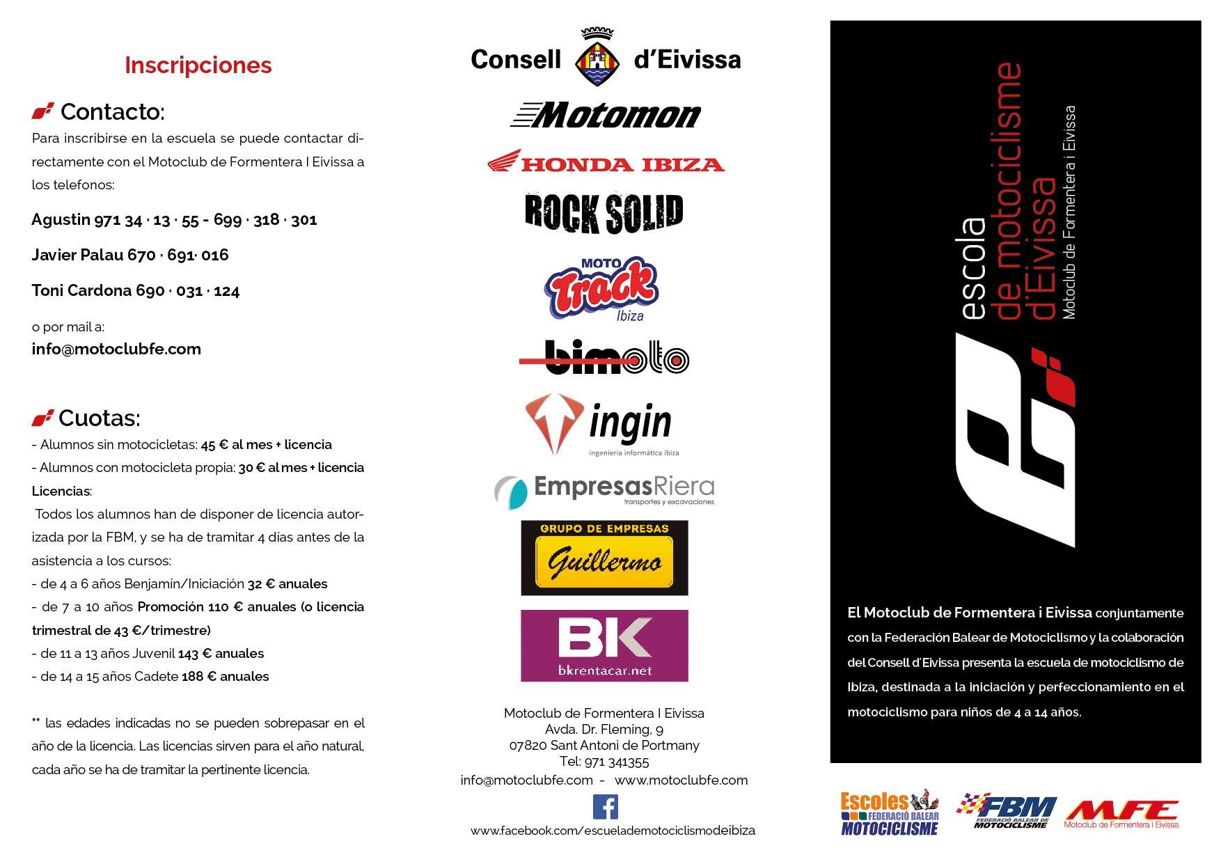 Para inscribirse en la escuela se puede contactar directamente con el Motoclub de Formentera I Eivissa a los teléfonos: